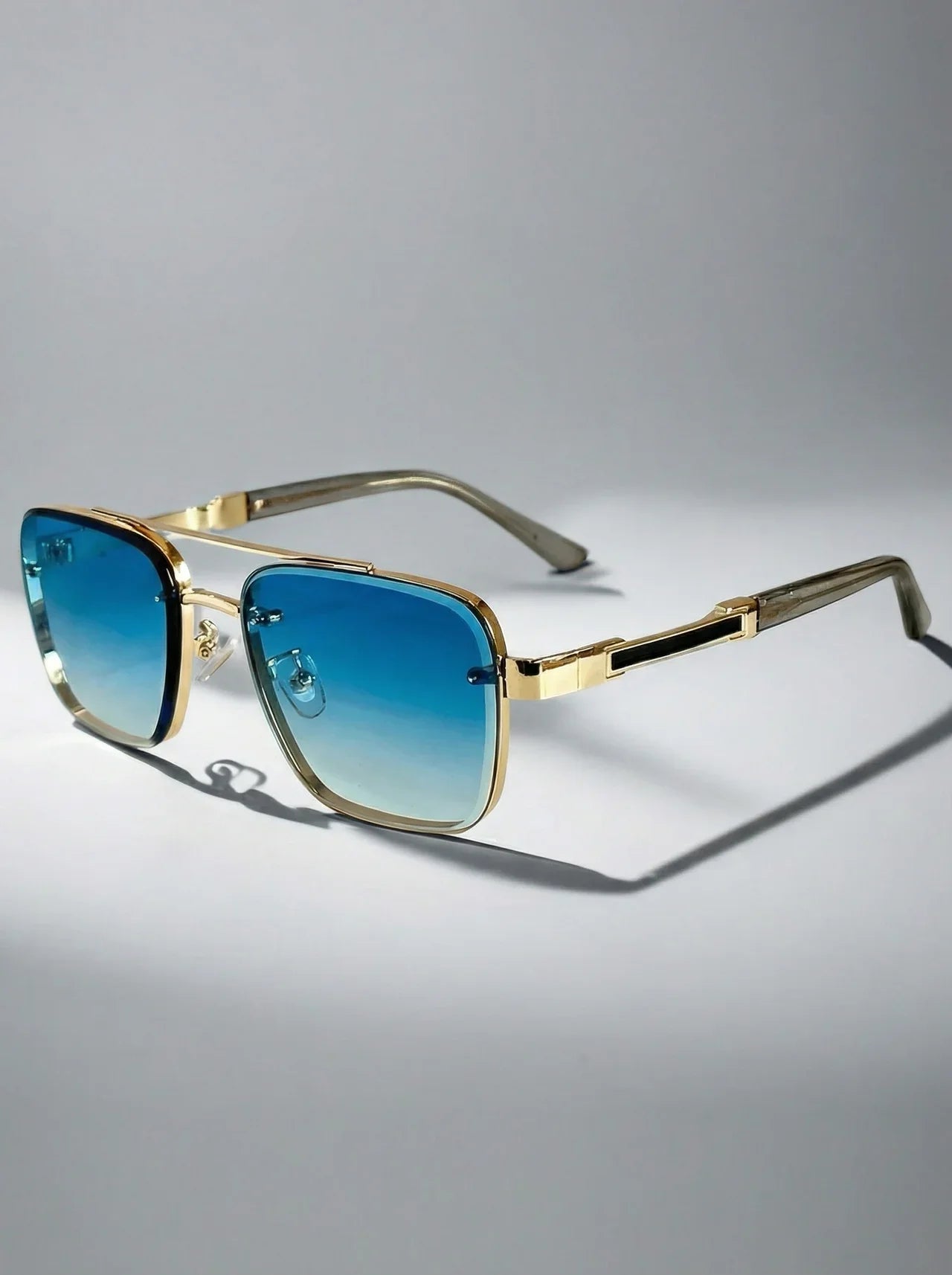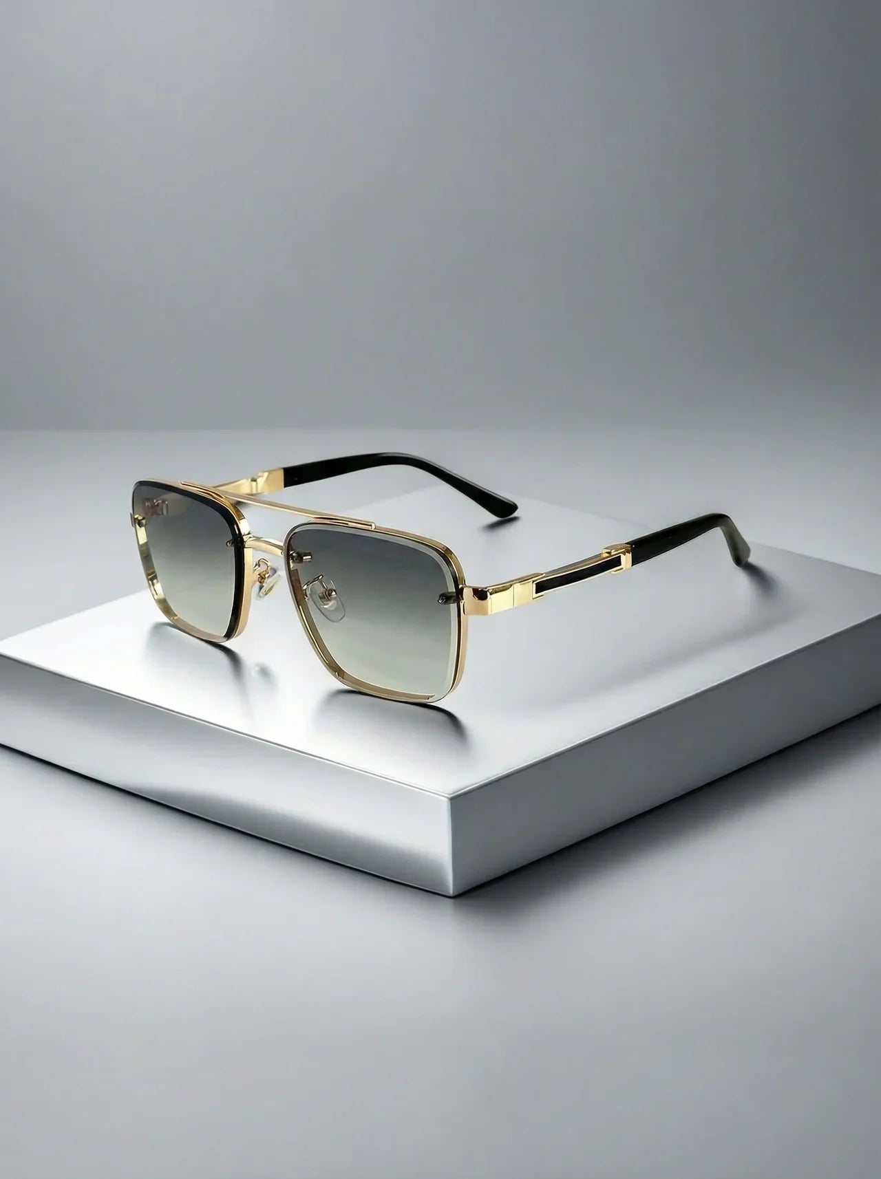 Poised and purposeful, these aviators embody refined control and quiet confidence. The squared silhouette, finished in a soft gold-tone, delivers presence without excess. Subtle gradient lenses create an air of intrigue—revealing little, yet suggesting more. Designed for those who appreciate precision, craftsmanship, and the power of restraint.